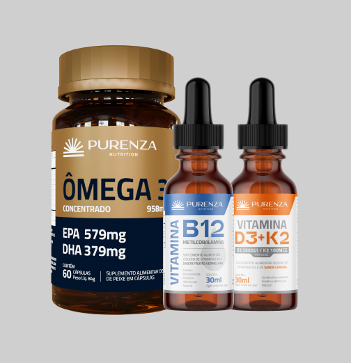 A Vitamina D3 + K2 PURENZA combina dois nutrientes essenciais para a saúde óssea, cardiovascular e imunológica. A D3 aumenta a absorção de cálcio no organismo, enquanto a K2 direciona esse cálcio para os ossos e dentes — evitando o acúmulo inadequado em vasos sanguíneos.