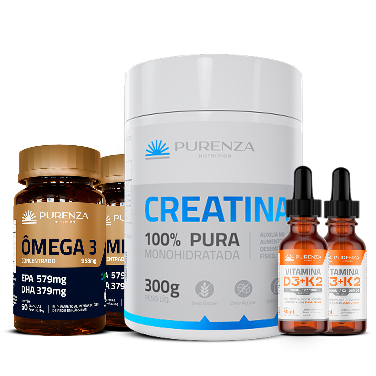 A Vitamina D3 + K2 PURENZA combina dois nutrientes essenciais para a saúde óssea, cardiovascular e imunológica. A D3 aumenta a absorção de cálcio no organismo, enquanto a K2 direciona esse cálcio para os ossos e dentes — evitando o acúmulo inadequado em vasos sanguíneos.